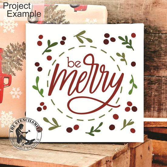 Create festive holiday decor with our Be Merry Stencil, featuring berries, leaves, and a charming stitched design. Add a cozy feel to your space by making DIY Christmas signs and pillows.