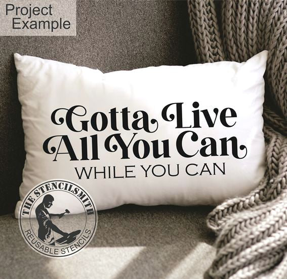 Capture the essence of living fully with this inspirational stencil, perfect for creating motivational DIY signs that resonate to the soul, featuring the timeless quote "Gotta Live All You Can While You Can".