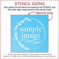 12" - Stencil measures 12" x 12" (actual image measures 10.5" x 10.5")